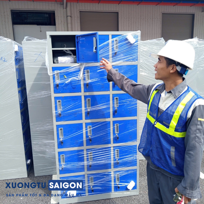 Mới đây, Xưởng Tủ Sắt Sài Gòn đã hoàn thiện đơn hàng 50 tủ sắt 18 ngăn, có 2 lưng, được sản xuất theo yêu cầu riêng và vận chuyển – lắp đặt tận nơi tại Bắc Giang.