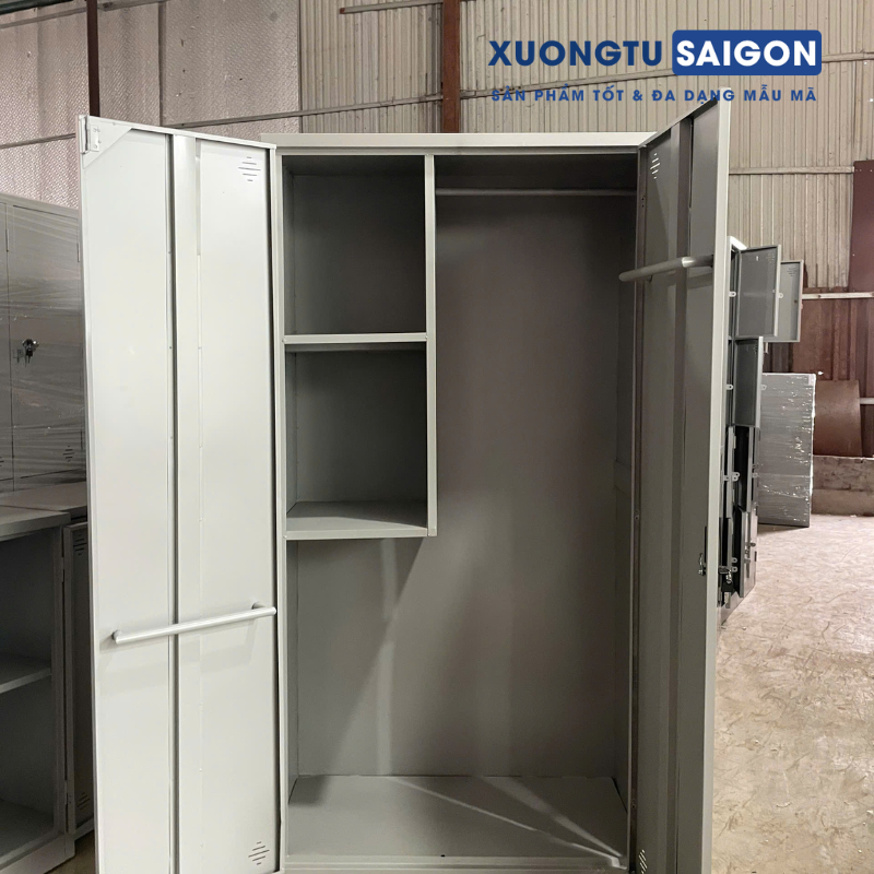 - Độ bền và tải trọng cao: Kết cấu khung sắt chắc chắn giúp tủ chịu được tải trọng lớn, không cong vênh hay biến dạng sau thời gian dài sử dụng.